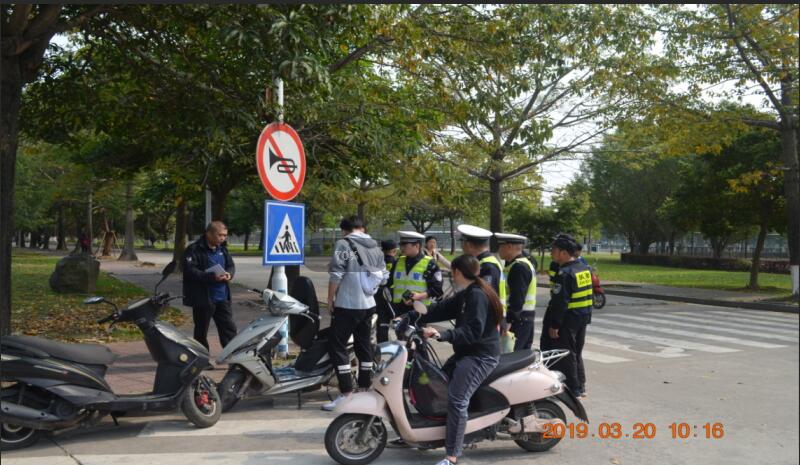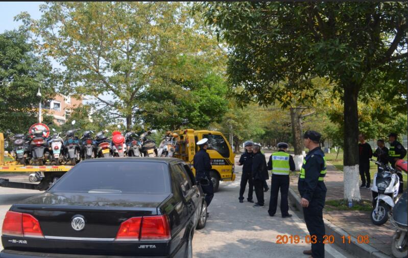 在前期多次教育和宣导的基础上,为进一步优化校园交通环境,消除安全隐患,保障师生出行安全,构建“平安校园”。近日,我处交通科、治安科与高新区交警大队联合,开展校区无牌无证超标电动车、油摩等违法违规车辆清理整顿。一批违法违规车辆查扣后由警方处理,同时对当事人进行教育和处罚。